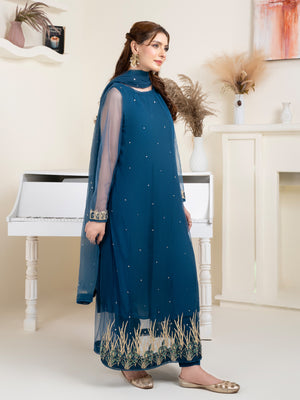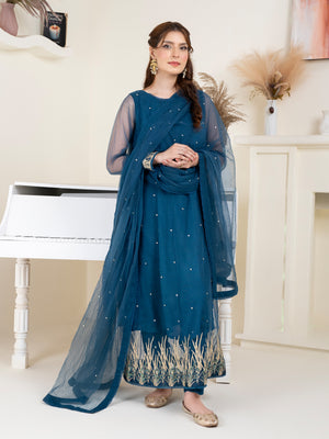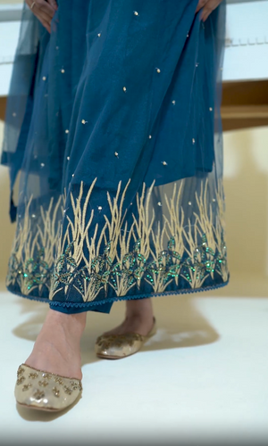 A graceful navy blue ensemble that blends timeless elegance with intricate handwork—crafted to elevate your festive and formal celebrations.