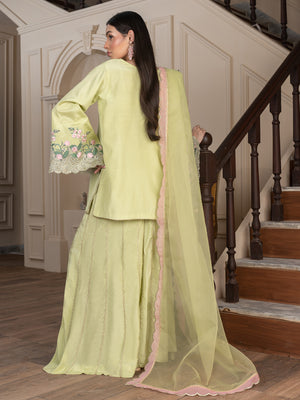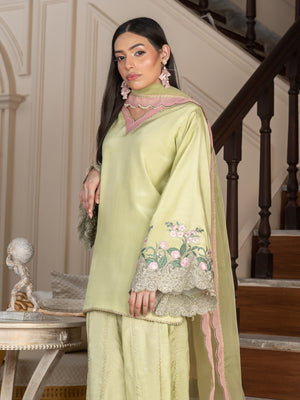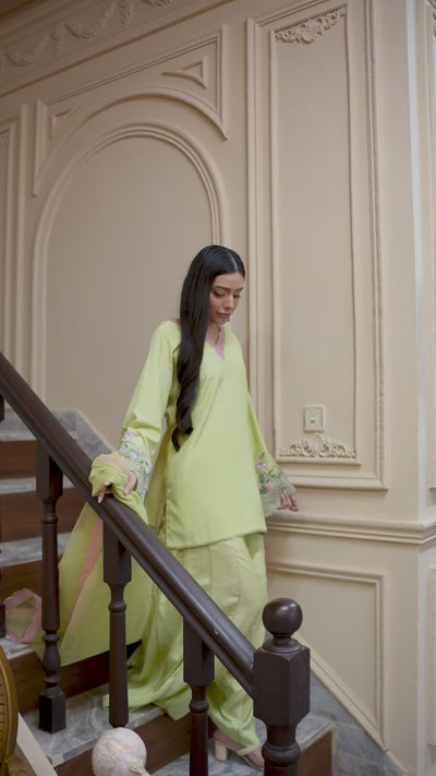Delicately embroidered with fine threadwork and accented with subtle gota embellishments to create a soft, elegant shimmer.