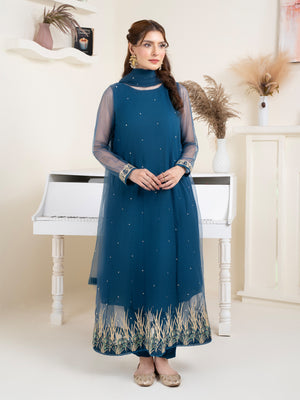 A graceful navy blue ensemble that blends timeless elegance with intricate handwork—crafted to elevate your festive and formal celebrations.