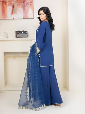 Make a bold yet elegant statement with this royal blue 3-piece outfit, blending traditional craftsmanship with refined style.