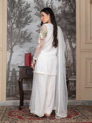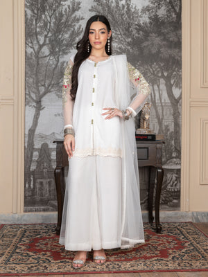 A timeless white ensemble that embodies grace and effortless chic—crafted to bring refined elegance to any occasion.